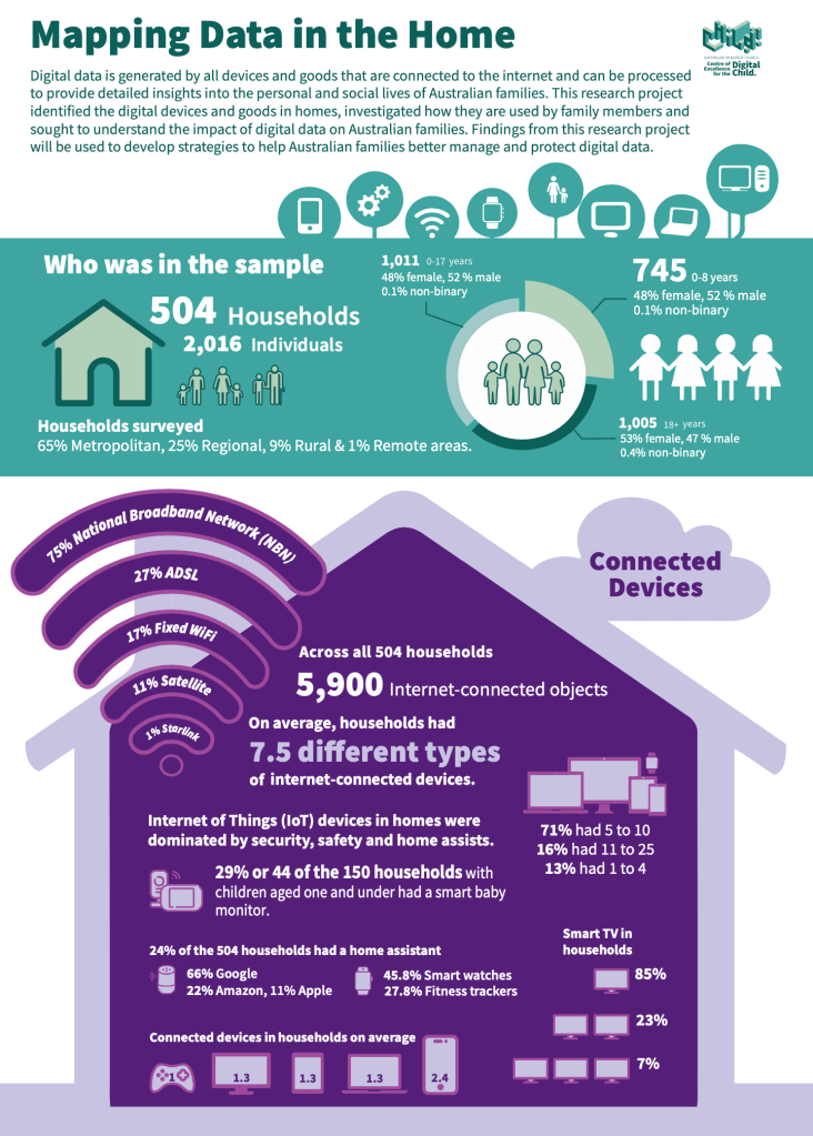 An infographic of the digital technologies in Australian family homes… lucipangrazio22 May 202324 May 2023Project: Data in the Home Post navigation Previous Share this: Click to share on X (Opens in new window) X Click to share on Facebook (Opens in new window) Facebook Like Loading... Related
